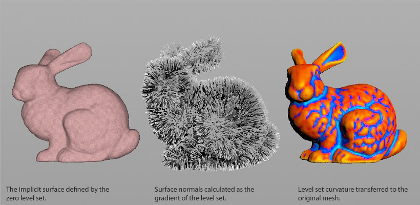 OpenVDB supports scalar- and vector-valued volumes and provides vector calculus and related operations such as gradient, Laplacian, closest-point transform and vector field curl and divergence.