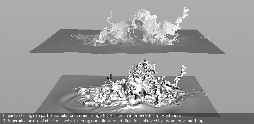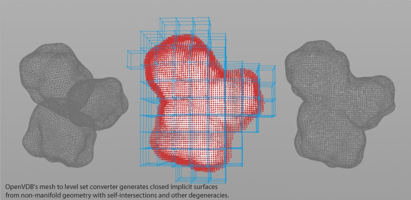 OpenVDB includes tools for advection of level sets or point clouds through vector fields, with the option to constrain points to surfaces, and tools to reshape, resample and segment volumes, highlighted by fast, seamless volumetric fracturing.